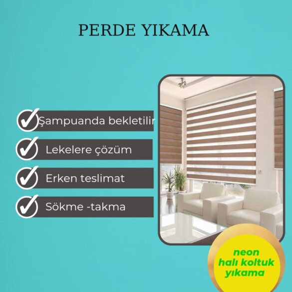Uzman ekibimiz tarafından isteğe göre yerinden sökülüp alınan perdeleriniz, lekeler yumuşayıncaya kadar şampuanda bekletilir ve yıkanır. Yıkanan perdeleriniz kurumaya bırakılır. Kuruyan perdeler son kontrolleri yapıldıktan sonra paketlenip teslim edilir.